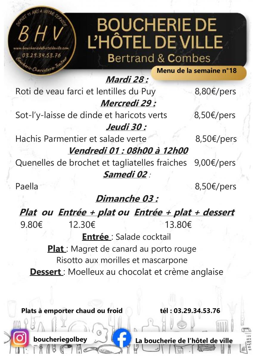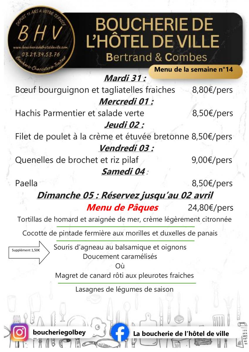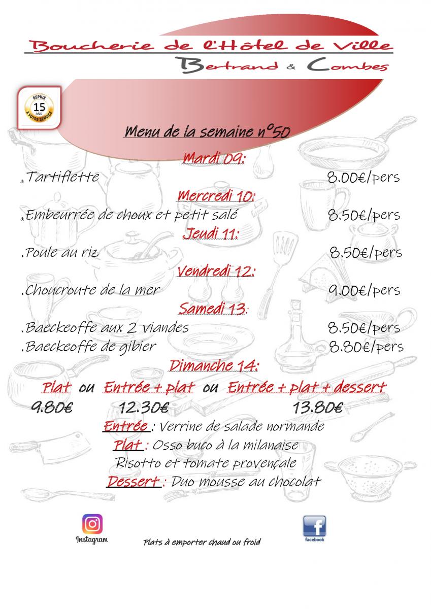BOUCHERIE DE L’HOTEL DE VILLE : LE MENU DE LA SEMAINE