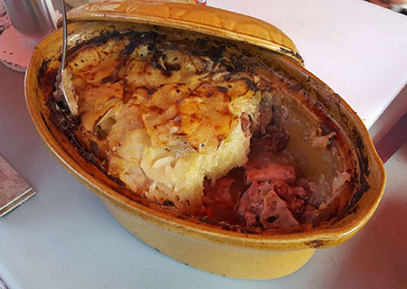Notre équipe élabore des plats mijotés pour votre plus grand plaisir, selon les saisons découvrez pieds de porc désossés farcis, couscous, cochons de lait farcis, paella, jambon braisé, beignets de pommes de terre….